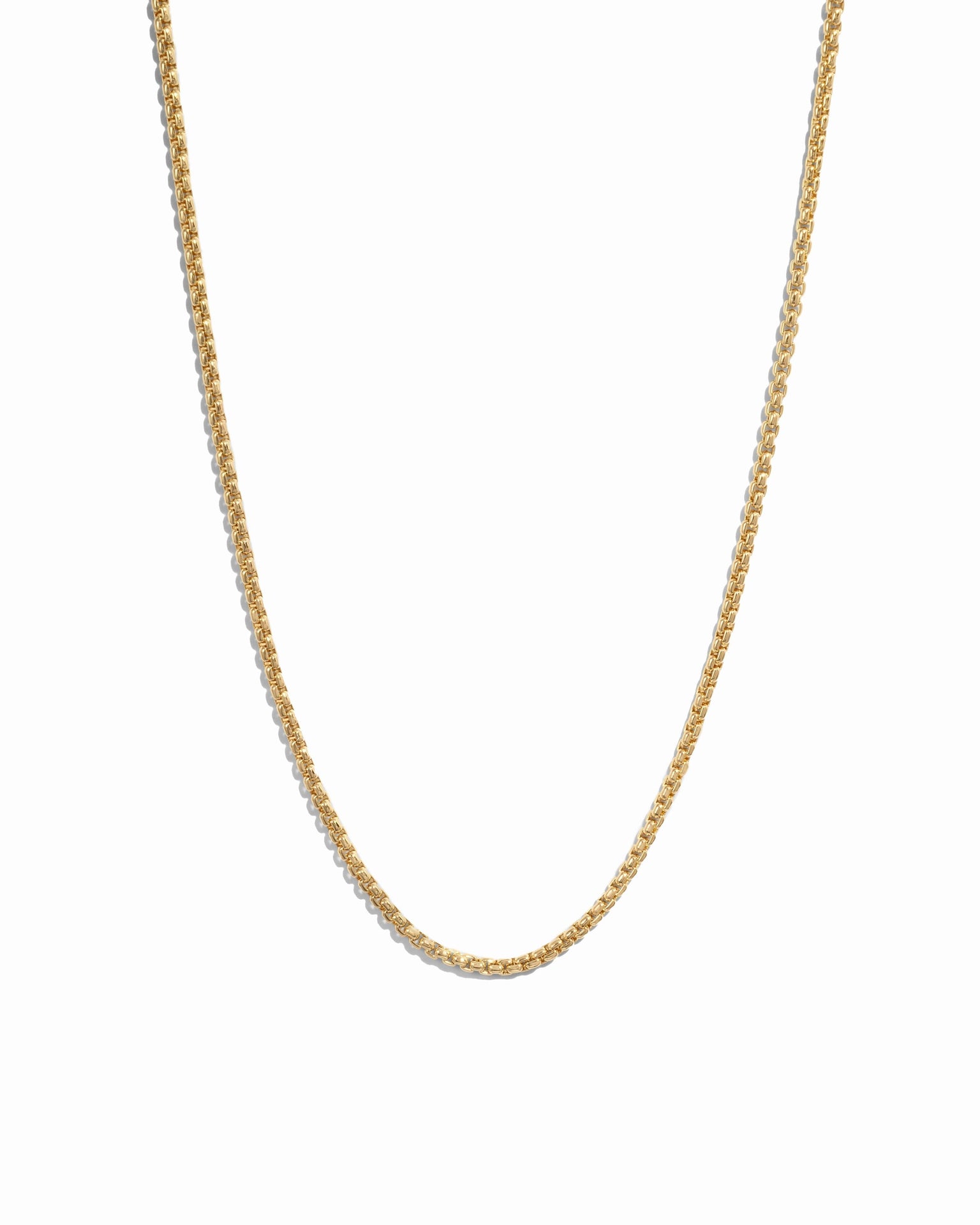 Design: Sleek round box chain — perfect for layering or wearing solo for a minimalist, polished look