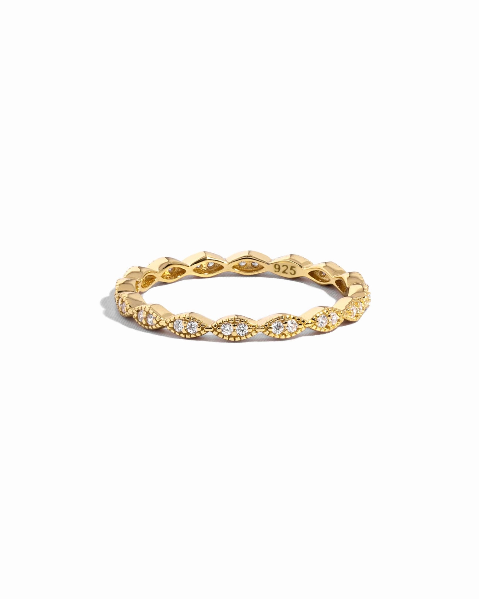 Design: A timeless staple for every jewelry collection — this Dainty Eternity Ring features a minimalist band lined with brilliant stones that catch the light beautifully. Perfect for stacking with your favorite rings or wearing solo for a subtle sparkle that goes with everything.