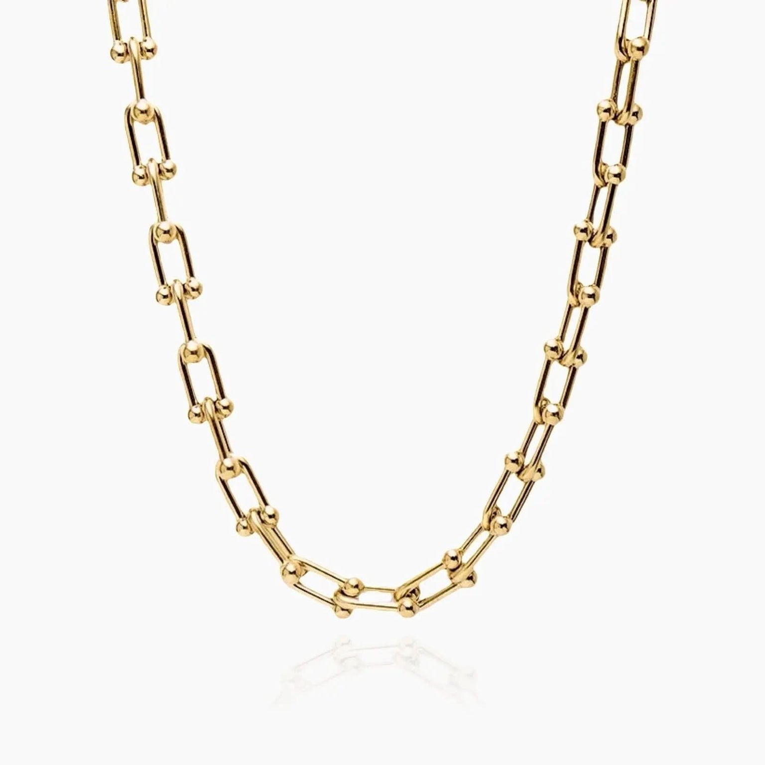 Design Details: Elevated U-shape horse shoe chain with a polished, high-shine finish; perfect for layering or wearing solo for a chic minimalist look